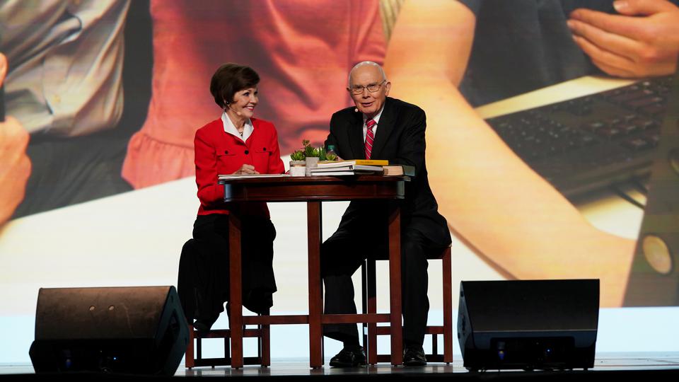 O presidente Dallin H. Oaks, da Primeira Presidência de A Igreja de Jesus Cristo dos Santos dos Últimos Dias e sua esposa, Kristen, foram palestrantes durante o esperado Dia da Descoberta Familiar no sábado.