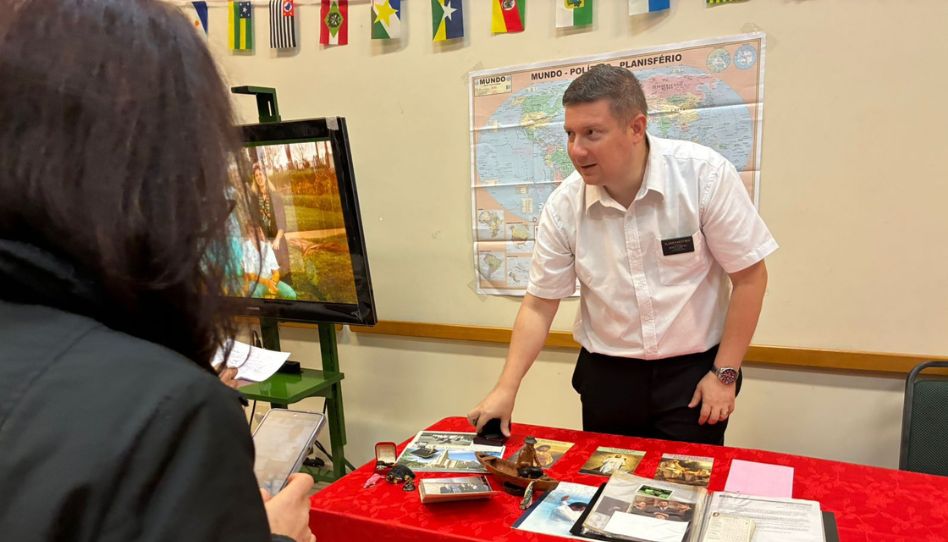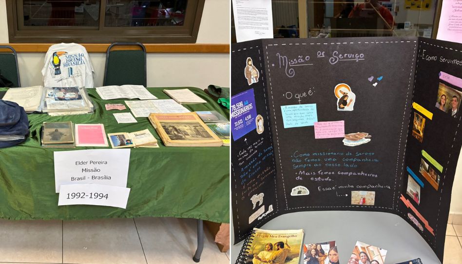 Havia algo diferente naquele domingo à noite na Ala São Domingos. O salão cultural foi transformado numa espécie de museu vivo da missão, com mesas com plaquetas desbotadas pelo sol, diários, chamados, planejamentos, fotos de jovens que agora são líderes, pais e avós. Era a Expo Missionária.