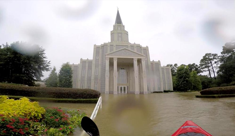 O aumento do nível da água durante as enchentes fez com que ela entrasse no Templo de Houston, Texas de A Igreja de Jesus Cristo dos Santos dos Últimos Dias, de acordo com o presidente do templo.