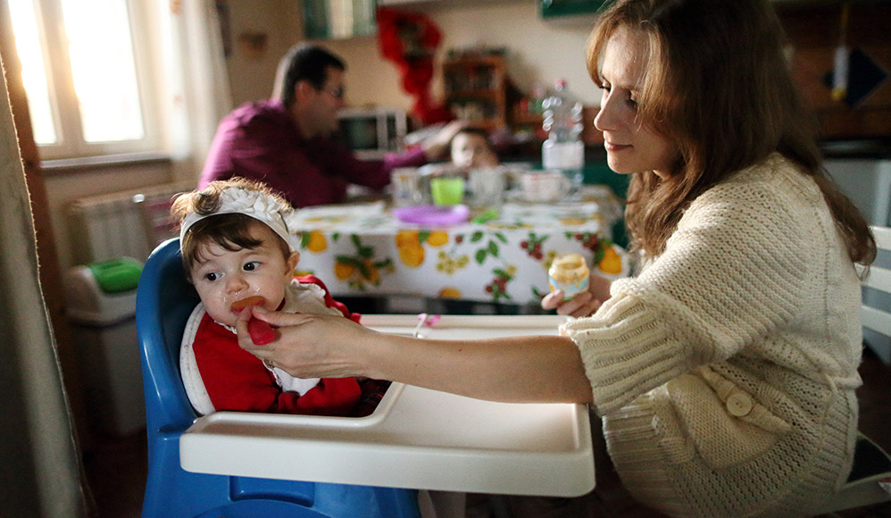 Bettina Monni, de Roma, na Itália, teve depressão pós-parto após o nascimento de seu primeiro filho. “Foi uma época maravilhosa em minha vida porque tive um filho, mas não pude sentir essa alegria por causa da depressão”, disse Monni, que encontrou consolo num discurso da conferência geral proferida pelo Élder Jeffrey R. Holland, do Quórum dos Doze Apóstolos que falou sobre depressão.